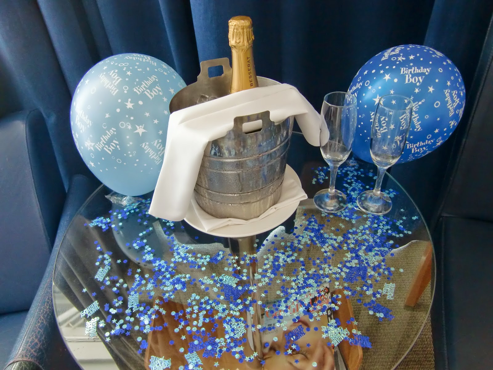 As I'd told the staff it was my husband's birthday and I'd ordered some champagne for the room, we got offered a free upgrade to a superior (See above). We also got an Elephant Towel Origami on our bed as a welcome present. I sent Del for his first surprise prezzy in the Spa and set about decorating the bedroom with balloons and just generally birthday-fying the place. Del loved his surprise!