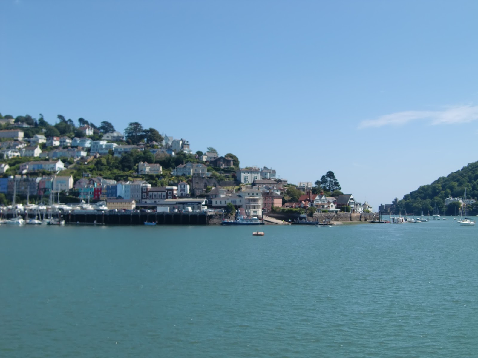 Another scene from the bus stop at Start Bay. We took a day trip out to Dartmouth, and at first, the place seemed familiar, but I couldn't think why. I then went to the local market that had a pet shop in it and remembered I visited here with Meg on her last Meggy Moo caravan holiday in May 2012! It's a very pretty town. We went on a boat trip around the bay and down the river. As you can see the day was glorious and made the place look all the more lovely to see.