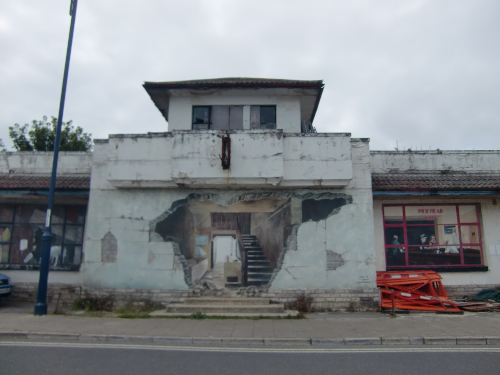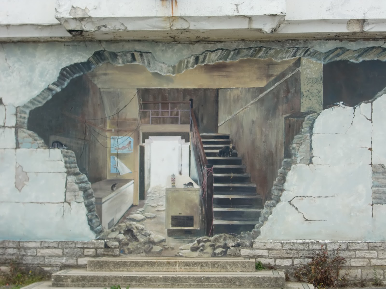 paint some very realistic murals on the boarded-up windows and doors. This one